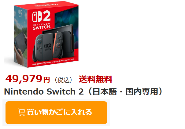 2026年1月16日現在。 switch2本体単品が予約できる状態です! Nintendo Switch 2(日本語・国内専用)価格:49,979円(税込、送料無料) (2026/1/16時点) 1/13現在購入手続きが出来る商品は以下の2つです 【セット商品】Nintendo Switch 2(日本語・国内専... 買い物