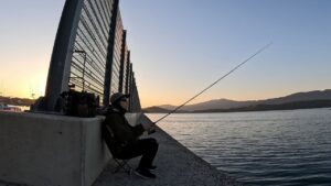 今回はルアー練習生、職場の同僚I君と糸島のF漁港へ。