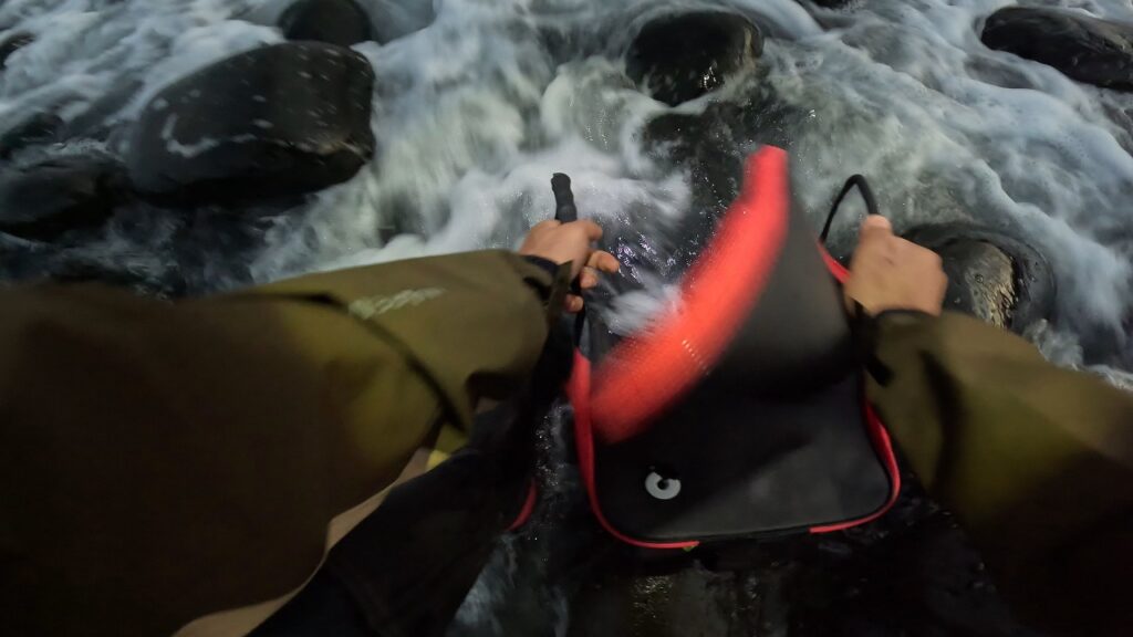 ゴロタの先まで行って波を待ってバッカンに水を入れたいのですが、