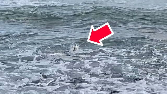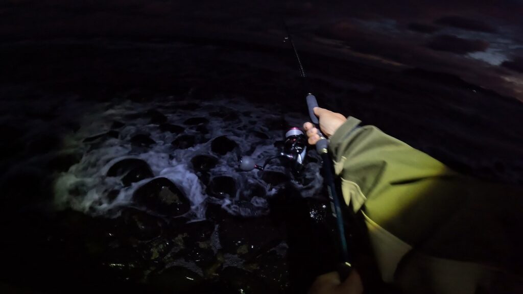 2度ほどのエラ洗いに耐えて波打ち際まで巻き寄せ、