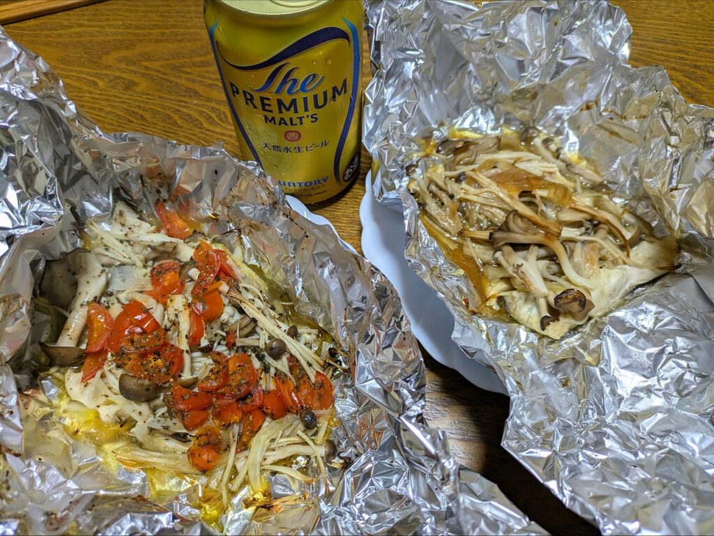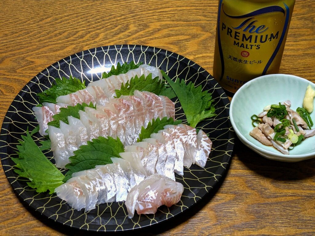 いつものお刺身と胃袋の湯引き、最近お気に入りのホイル焼きでいただきました!