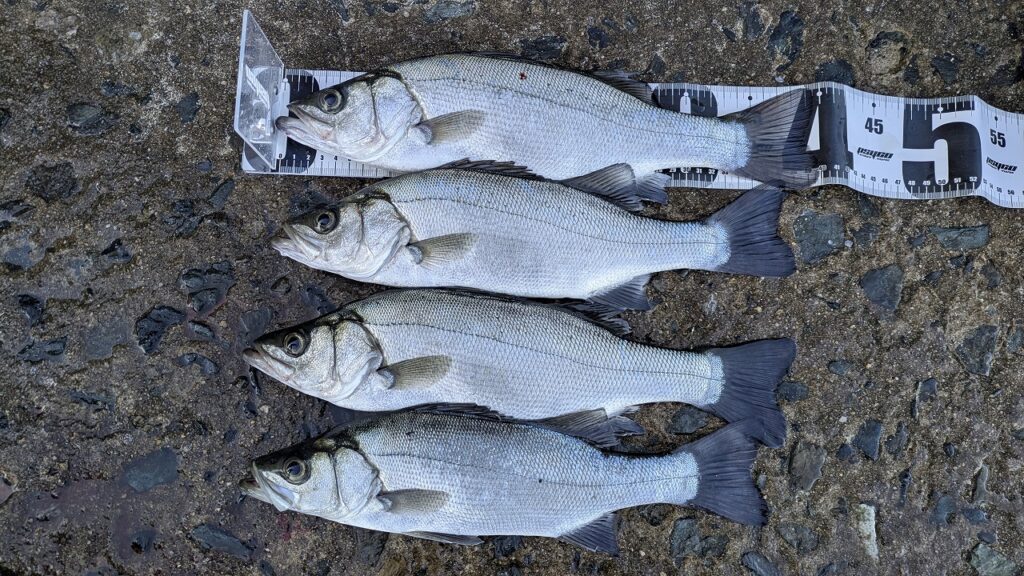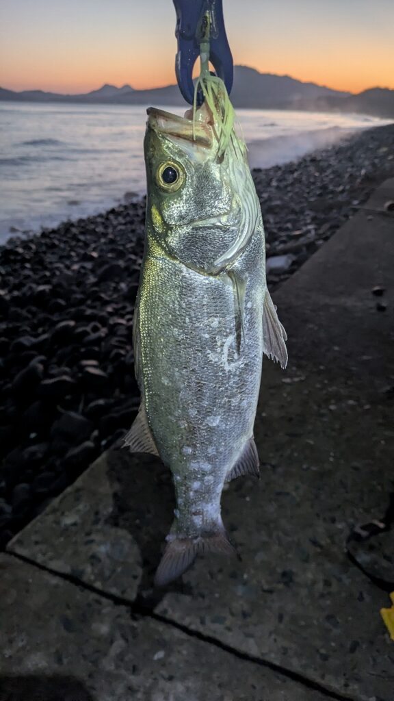 朝マズメの短い時合いでヒラセイゴを2匹ゲットし