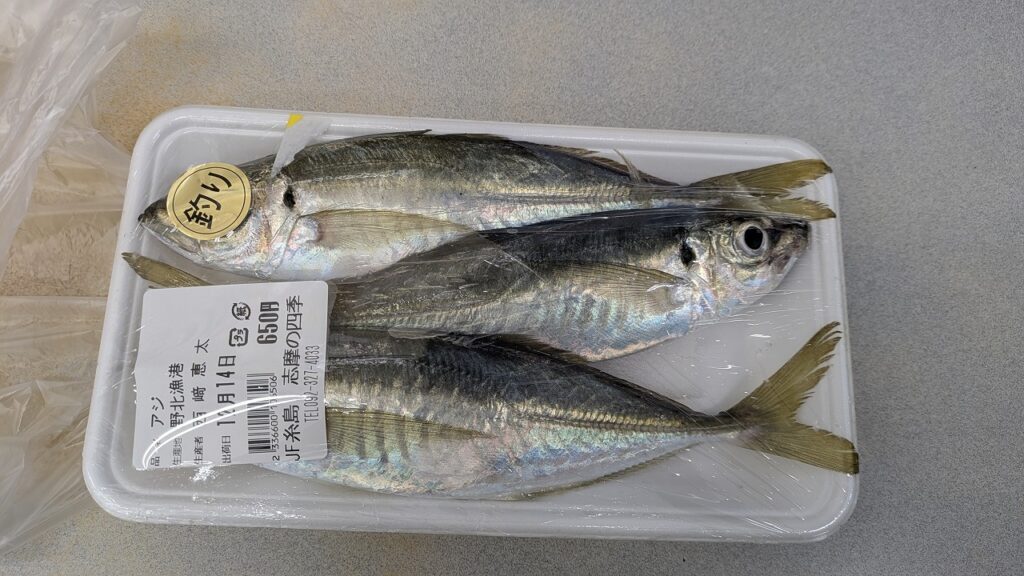 お刺身サイズのアジが1つだけ残っていました!