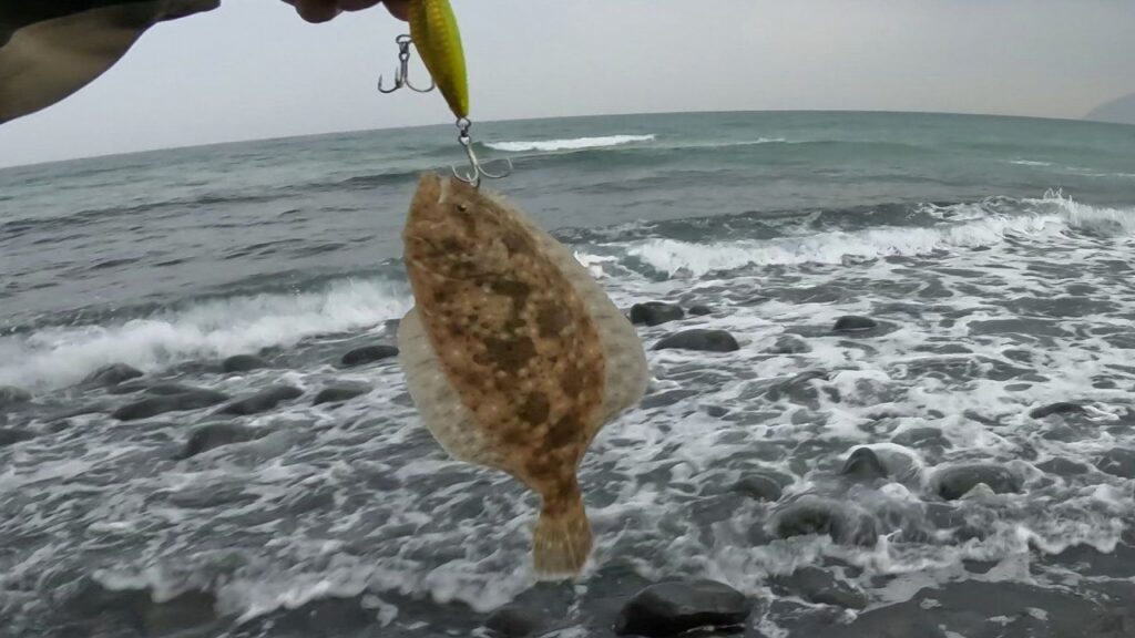 朝マズメが終わった後は早めにメタルジグを遠投してヒラメ狙いにシフト。