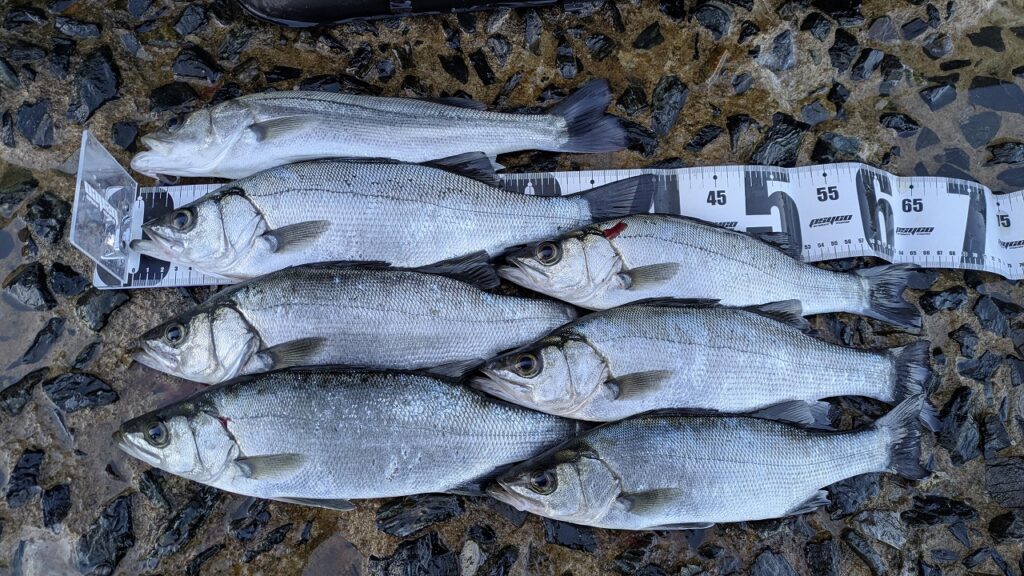 ヒラセイゴ3本マルセイゴ1本釣り上げ