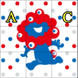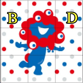AとB、CとDはドットでの区別は無理ですので、 隣接するパーツとの兼ね合いや、 完全1面を作るにあたって側面の柄等で判別していきます。 |