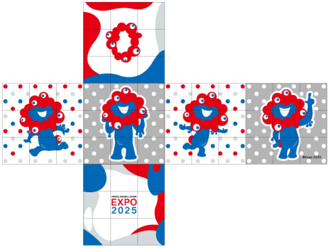 上段の角2つは 色ドット背景でミャクミャクの赤い細胞がちょっとだけある 似たようなパーツですが、 真横に並ぶ赤いドットが判別の手がかりになります。