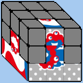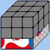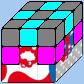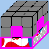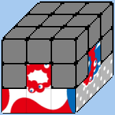 細胞面の中央が見つかったら、 最初に揃えた色ドット左向き面を回転させ 細胞面の側面中央と側面1段目の絵柄を合わせて 下図のようにします。