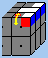 それではここでも下準備。 矢印部分を自由に回して「白緑」エッジキューブを合わせます。