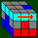 ※AとA’は左右対称の動きになっています。 A、A’を使って他の色も2段目まで揃えてください! 下図のように色が逆に入っていた場合など、上段に必要なパーツが無いときは ![]() AまたはA’の手順を行って、上段にパーツを移動させます。 ※ここではAを使って説明します。 上図のように、上段に移動させたいパーツが右になるように持ち、Aを行います。 その後、上面を回転させ、移動させたパーツを正しい向きになるようにAの手順で移動させます。